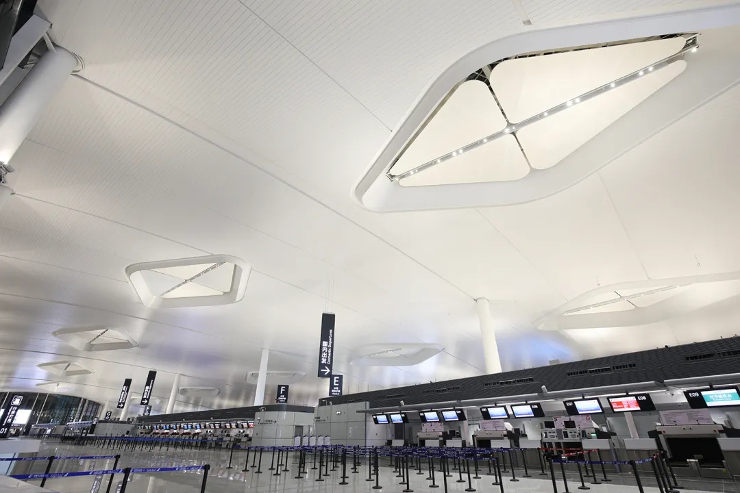 寧波櫟社國際機(jī)場是長三角區(qū)域重要基礎(chǔ)設(shè)施和交通樞紐,三期擴(kuò)建工程是寧波建成現(xiàn)代化國際港口城市骨干項目,重大標(biāo)志性工程。機(jī)場曲線輪廓造型展現(xiàn)了“海定則波寧”的城市氣質(zhì),建立了寧波新門戶形象。
