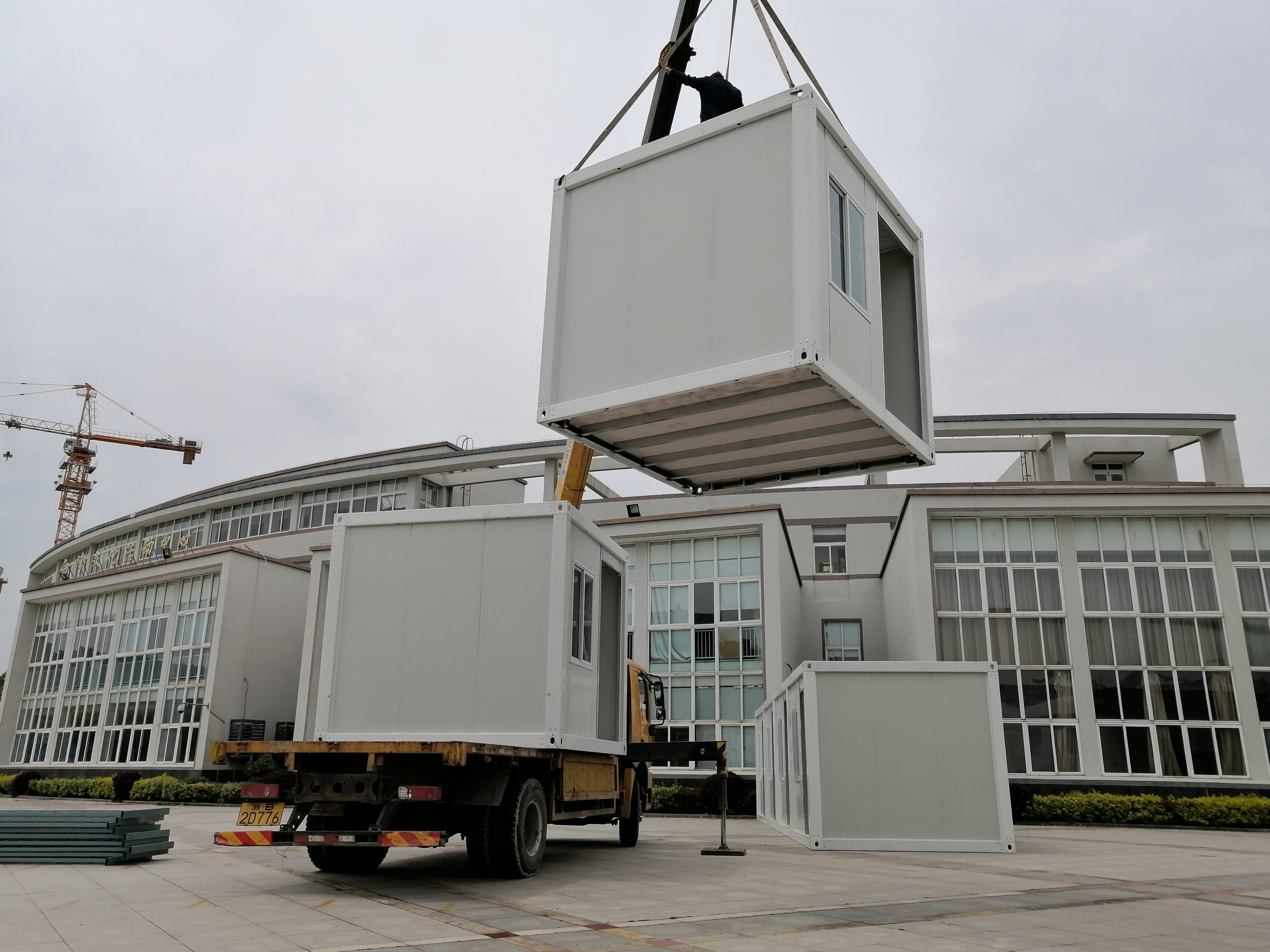? ? ? 任務(wù)擬定好后第五分公司連夜設(shè)計(jì)制作核酸采樣移動(dòng)工作站,考慮到露天采樣、雨天地滑,制作時(shí)在底部采用了鋁紋防水防滑板,不容易腐蝕;整體墻面采用了防火隔熱的巖棉夾心板,利于夏日采樣;通道頂部還留了小面積白板,用于掛“采樣通道”led顯示標(biāo)識(shí)牌。為了早日投入使用,制作人員加班加點(diǎn)歷時(shí)28個(gè)小時(shí)終于完成了8個(gè)9平方的核酸采樣移動(dòng)工作站的定制工作,為疫情防控工作略盡綿薄之力。有了這個(gè)核酸采樣移動(dòng)工作站,醫(yī)護(hù)人員在室內(nèi)即可完成受檢人員的拭子采樣操作,再也不用擔(dān)心天氣變化,風(fēng)吹日曬了。