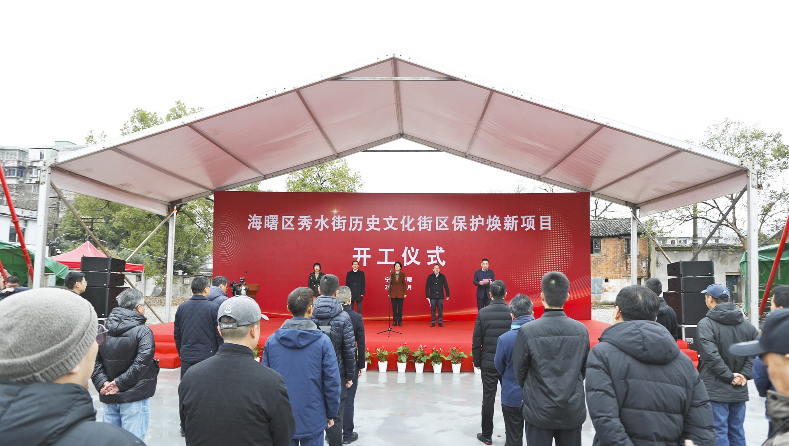 ? ? ? ?2月22日,公司承建的海曙區(qū)秀水街歷史文化街區(qū)保護(hù)煥新項(xiàng)目開工儀式舉行。區(qū)委副書記、區(qū)長(zhǎng)葉枝利,區(qū)人大常委會(huì)副主任曹杰,副區(qū)長(zhǎng)俞鵬宏,區(qū)政協(xié)黨組副書記、副主席薄慧敏等領(lǐng)導(dǎo)出席開工儀式。項(xiàng)目建設(shè)單位及各參建單位代表參加開工儀式。