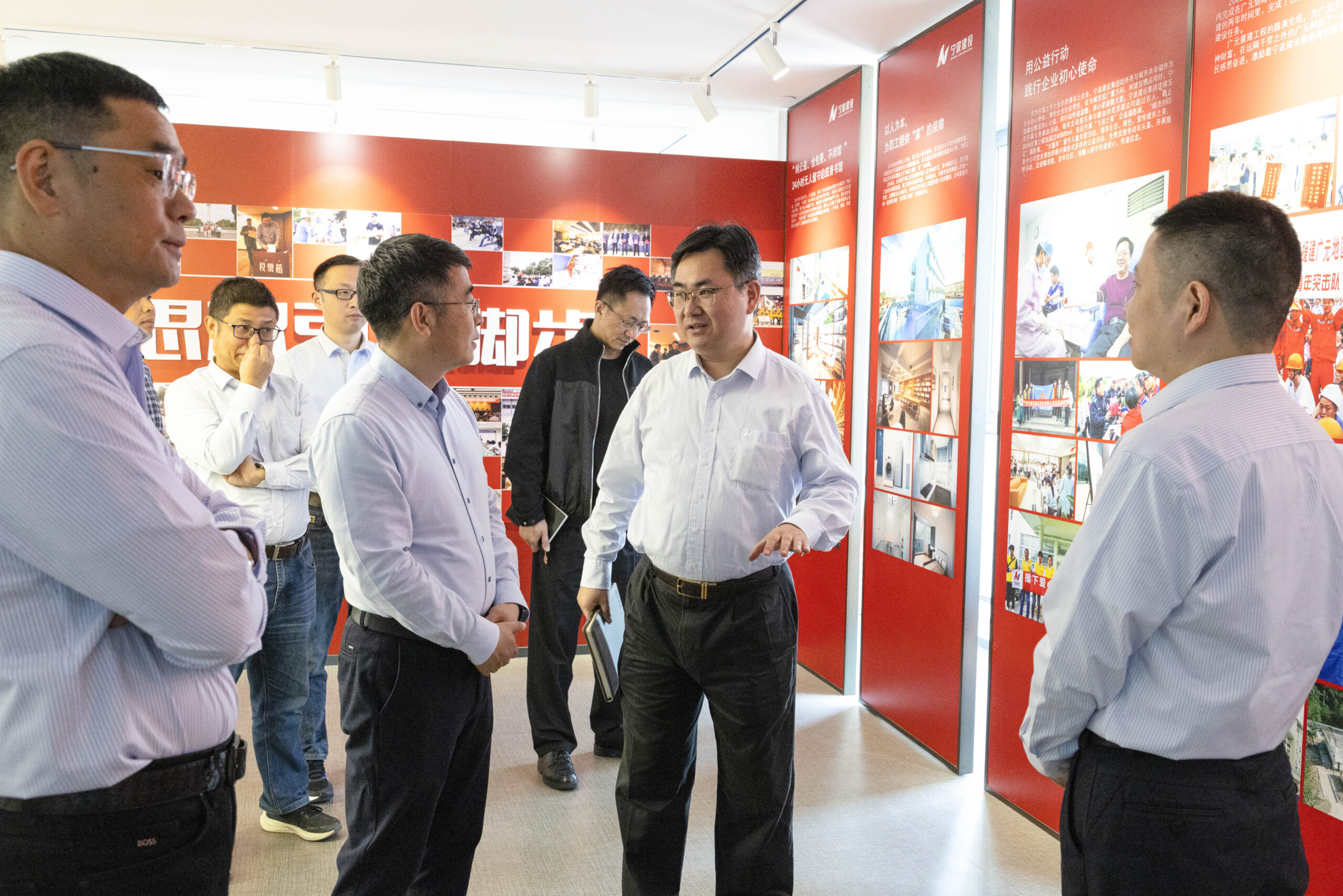 ? ? ? ?調(diào)研組一行首先參觀了寧波建設(shè)集團(tuán)企業(yè)文化展廳,詳細(xì)聽取了公司發(fā)展歷程、重點(diǎn)項(xiàng)目成果及質(zhì)量管理體系建設(shè)情況匯報(bào)。作為寧波市建筑施工領(lǐng)域的龍頭企業(yè),寧波建設(shè)集團(tuán)始終秉持“匠心筑城、品質(zhì)為先”的理念,承建了寧波櫟社機(jī)場(chǎng)、奧體中心、城市快速路等多項(xiàng)標(biāo)志性工程,以卓越的工程質(zhì)量和服務(wù)水平贏得了社會(huì)各界的廣泛贊譽(yù)。