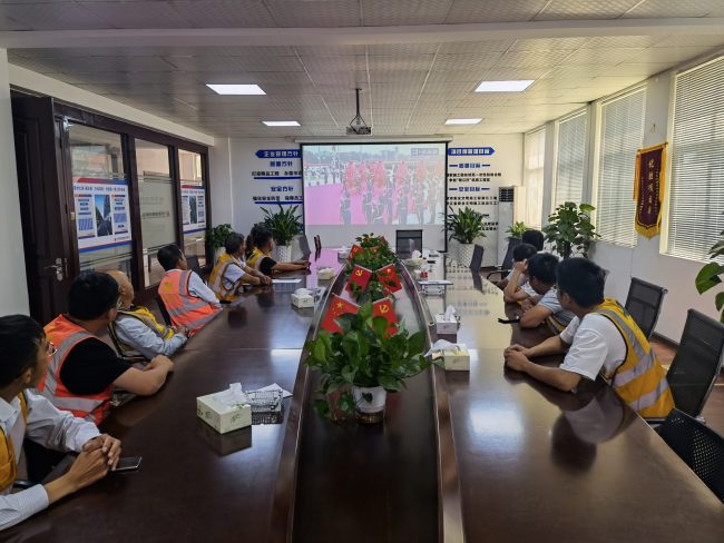 ? ? ? ?銀白锃亮的腳手架、明黃色的定型化護(hù)欄和玻璃墻面的新型箱式辦公室……在藍(lán)天下熠熠生輝,充分體現(xiàn)著施…